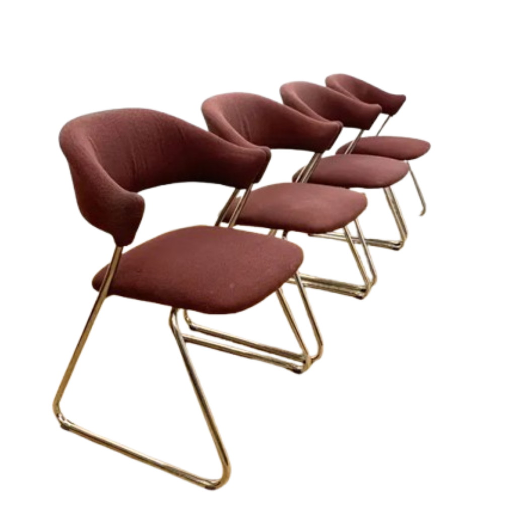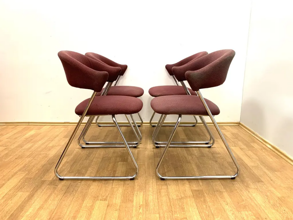 The chairs are in excellent original condition, with only slight fading on the upholstery consistent with age. They can be used immediately without the need for renovation. Their clean lines and minimalist chrome design make them ideal for both vintage and contemporary interiors — perfect for dining, office, or lounge spaces.