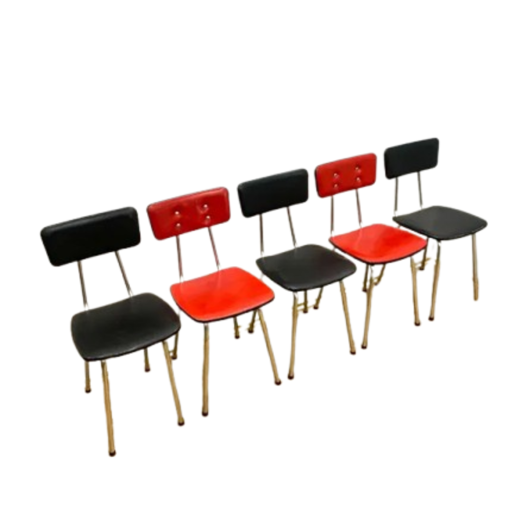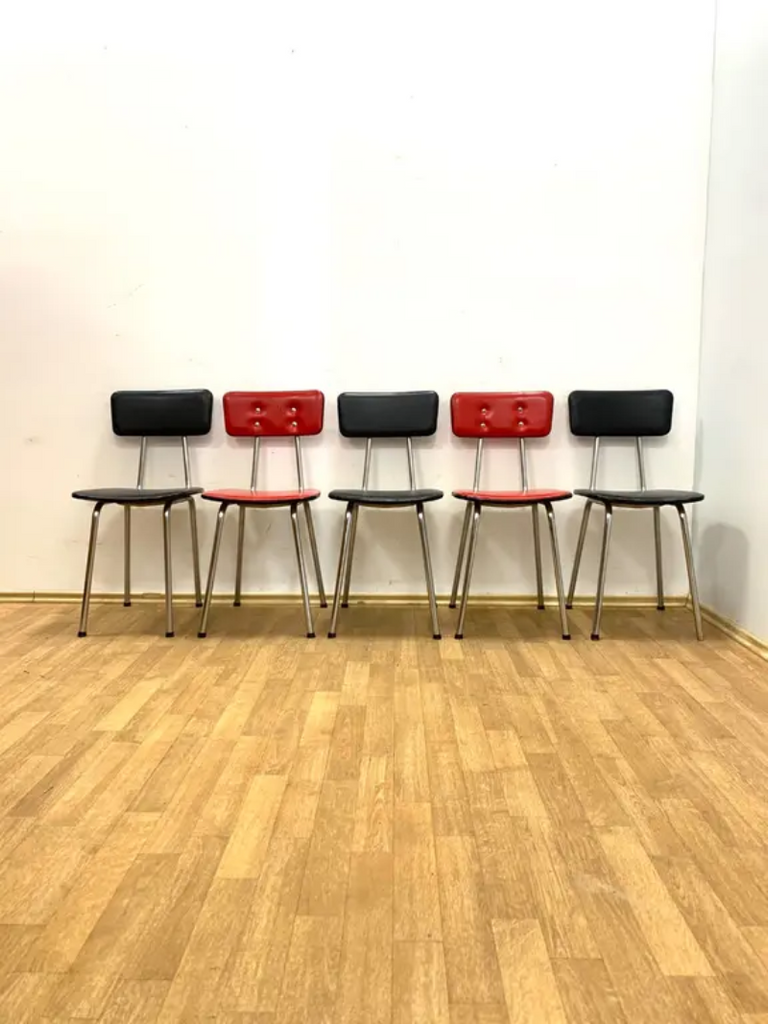 Set of 5 Retro Chairs, 1970s, Czechoslovakia (Chrome & Leatherette)
